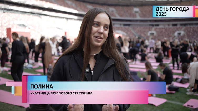 Большая спортивная арена «Лужники» по праву считается одним из символом Москвы. После третей по счету реконструкции, завершившейся в 2017 году, его вместимость достигла 81 тысячи человек. Именно здесь проходил финал чемпионата мира по футболу 2018 года. Стадион также регулярно принимает крупнейшие концерты страны. Ко Дню города огромное футбольное поле было подготовлено для проведения массовой тренировки по стретчингу. Эта специализированная фитнес-программа нацелена на улучшение гибкости и эластичности всего тела, а также подвижности суставов.