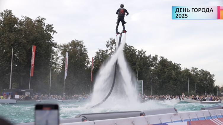 Еще одно красочное шоу проходило на площадках водных видов спорта. Здесь профессионалы демонстрировали акробатические элементы в воздухе — «Гидрофлай». Его принцип действия основан на потоке одной или нескольких водяных струй, бьющих под огромным давлением для создания реактивной тяги.