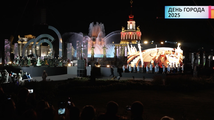 Завершился День города на ВДНХ красочным шоу «Кольца Москвы». Каждый эпизод этого выступления был посвящен жителям столицы России разных эпох, их вкладу и усилиям в развитие всеми любимой Москвы. На большой сцене, разделенной на 3 сектора, вместе выступали музыкальные, танцевальные и хоровые коллективы. Артисты, двигаясь от края сцены к центру, создавали образ прогулки по городской улице. В это время на экранах демонстрировались мультимедийные ролики, повествующие об истории города.