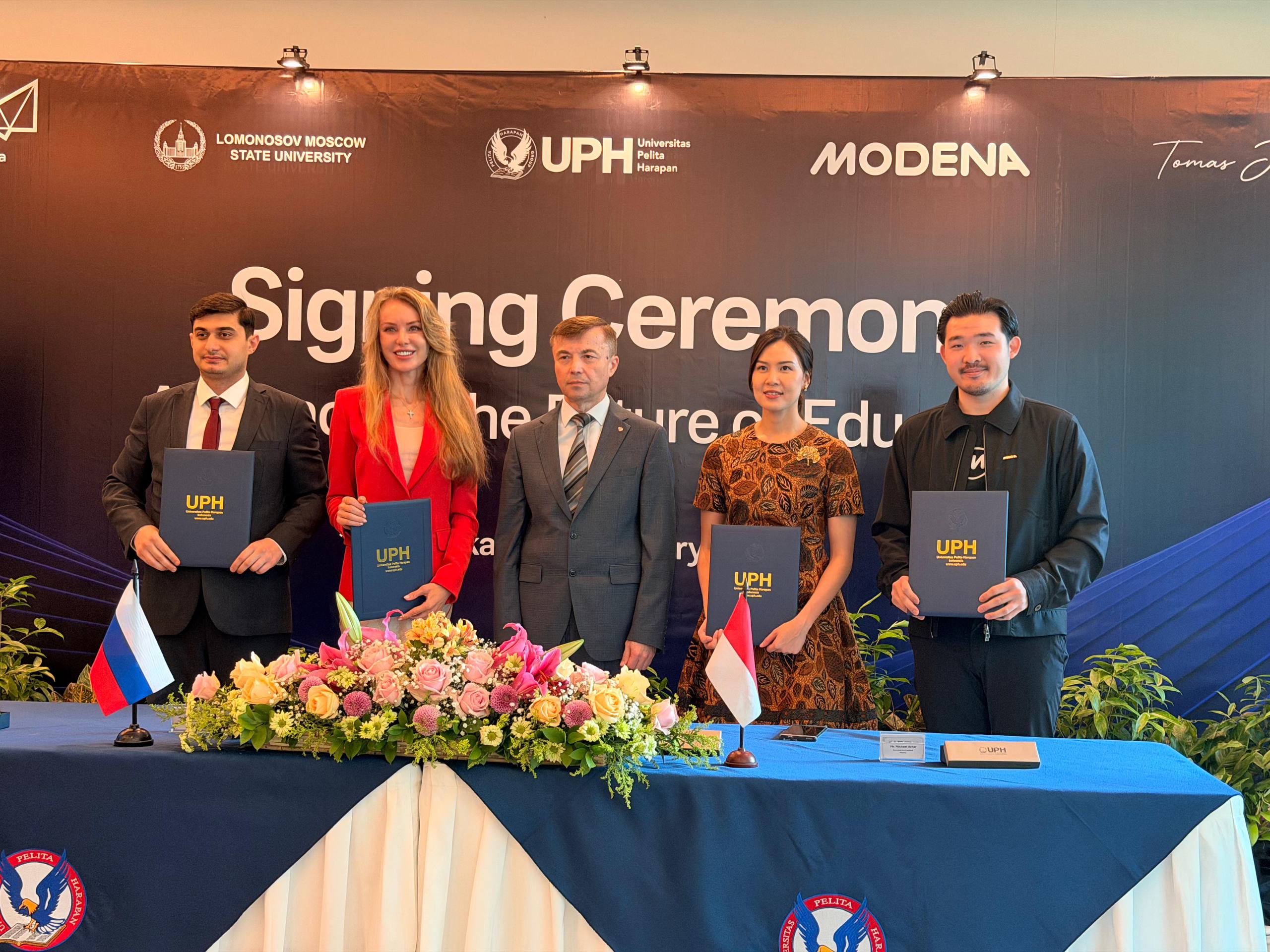 В Джакарте прошла церемония подписания меморандума о взаимопонимании между фондом «Иннопрактика», МГУ им. М.В.Ломоносова, индонезийским университетом Pelita Harapan и индонезийской компанией Modena Global Ltd. Об этом сообщили в посольстве РФ в Индонезии.